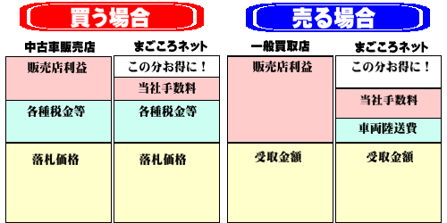つまり、お客様が直接オークション会場で、オークション代行を通して車を購入すれば、中古車販売店の中間マージンを取られない為、必ず安く、気に入った車を購入する事が出来るのです。