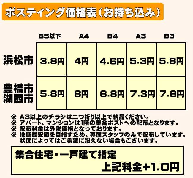 ポスティングでは大原則として競合チラシを同時にポスティングすることはありませんし、当社のポスティングでは同時に配る枚数を2枚までとしている為、訴求効果は高いと考えられます。